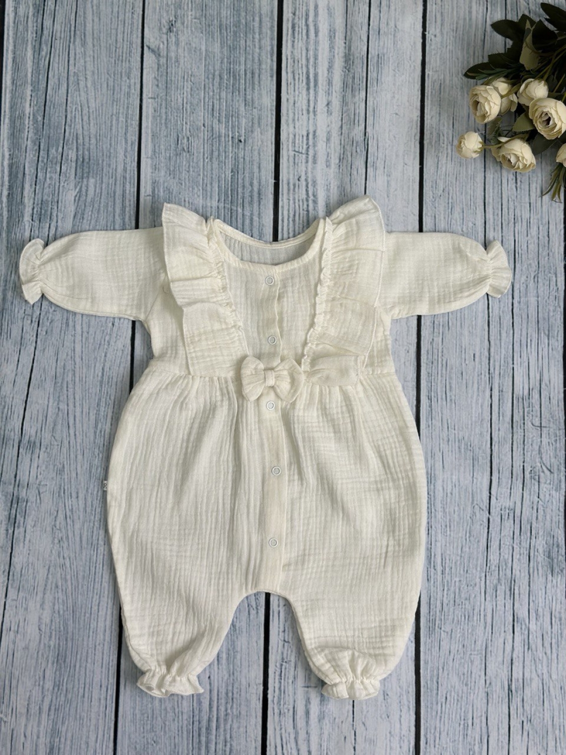 Комбинезон  с бантом из муслина для девочки. Очень красивое и мягкое, в живую еще лучше